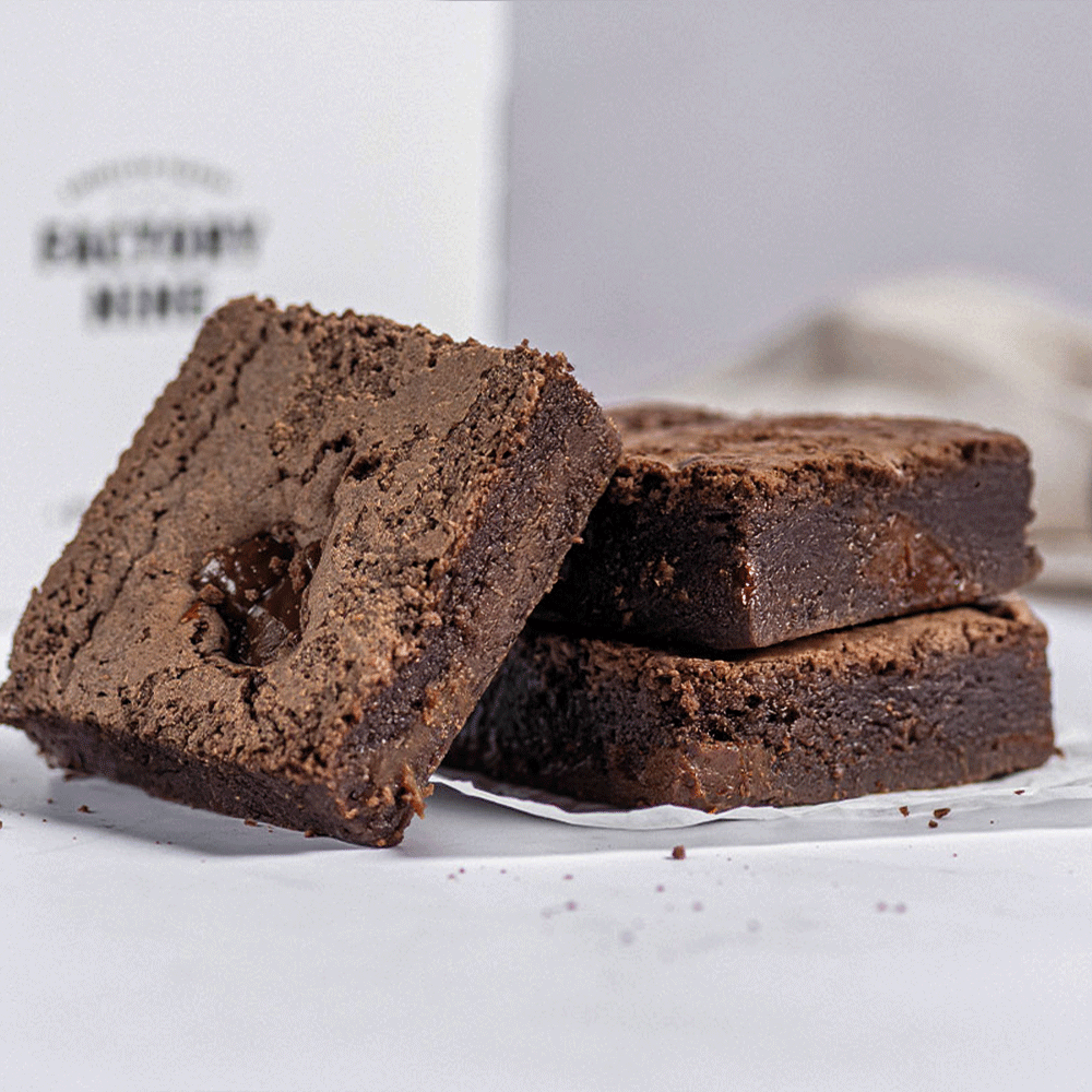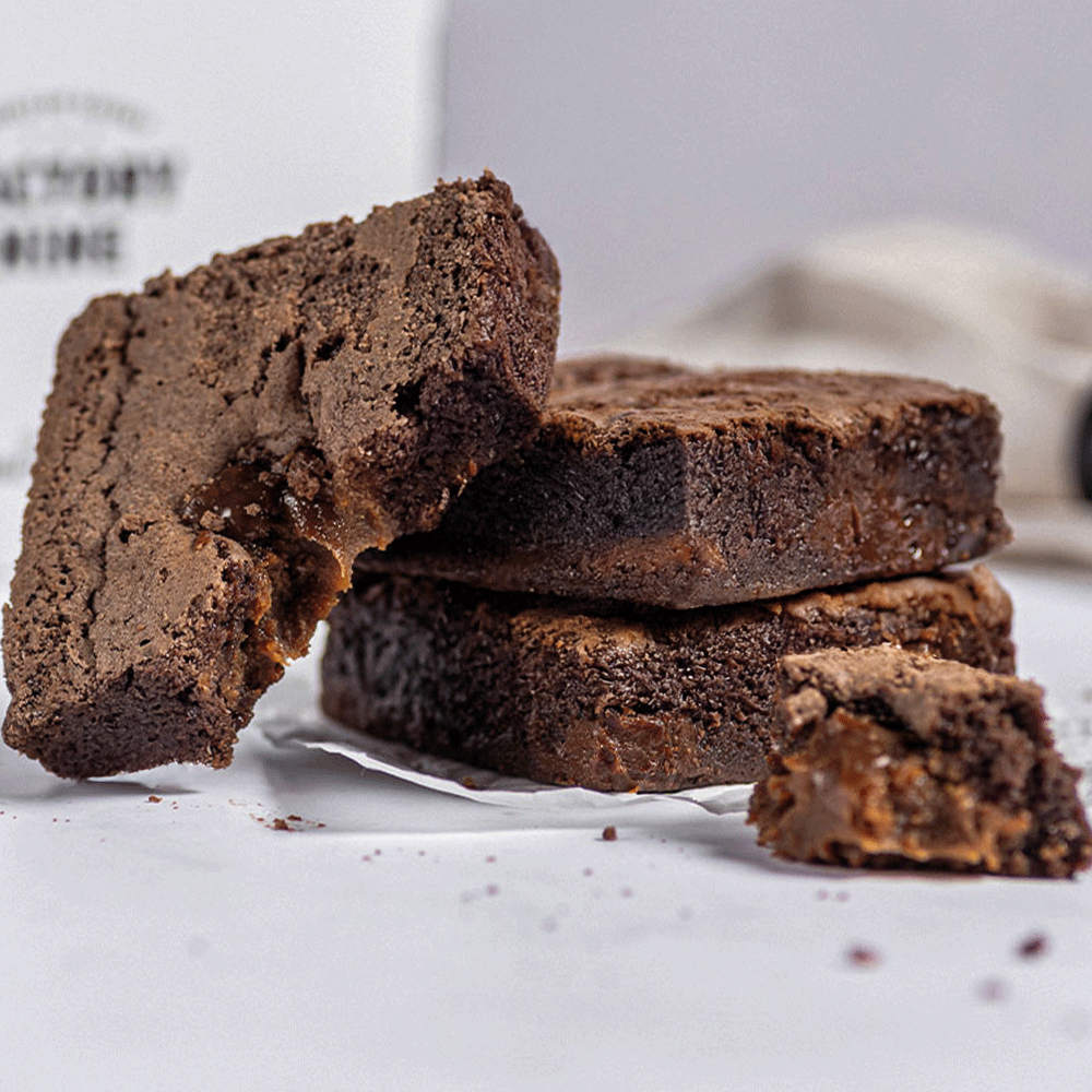 Brownie húmedo tradicional con marmoleado de dulce de leche