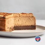 Base de brownie de chocolate, relleno de cheesecake con manjar, decorado con un frosting de manjar y salsa de manjar. Producto sin azúcar, endulzado con maltitol, sorbitol y tagatosa.