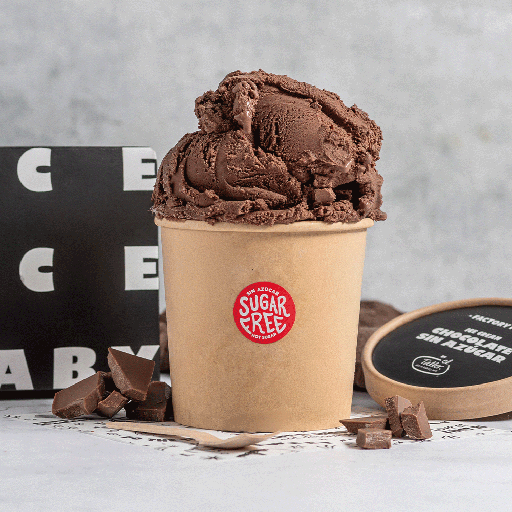 Helado de cacao sin azúcar. Contiene lactosa. Disponible en 355 ml