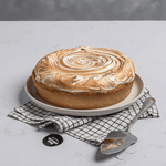 Masa crujiente, abundante relleno de mezcla cremosa de limón y cubierto en merengue. Medida formato Grande 22 cm de diámetro. Para 8 a 10 personas.